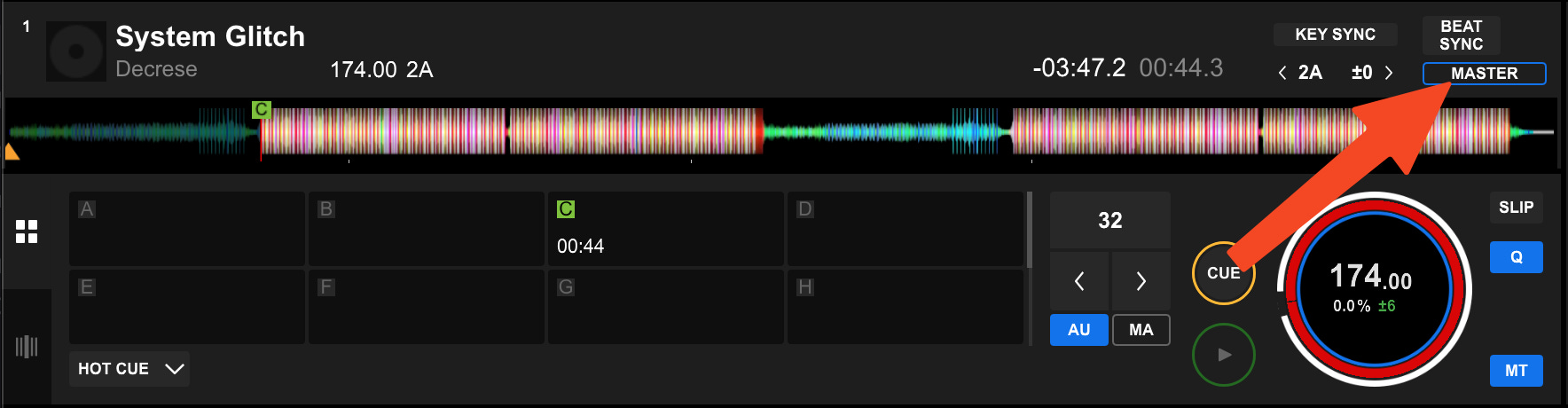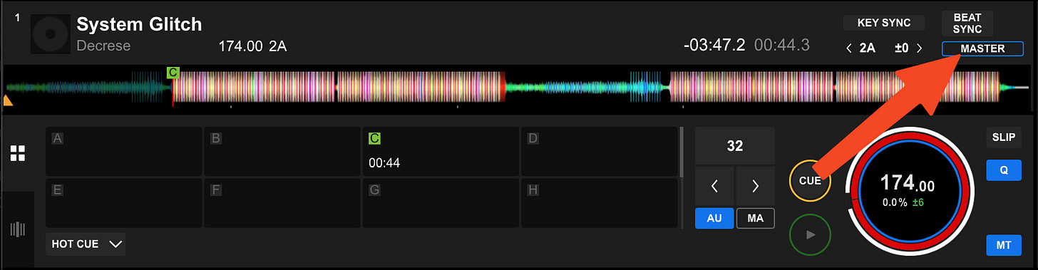 Load two tracks you want to remember the transition for and make sure one is set to the master deck